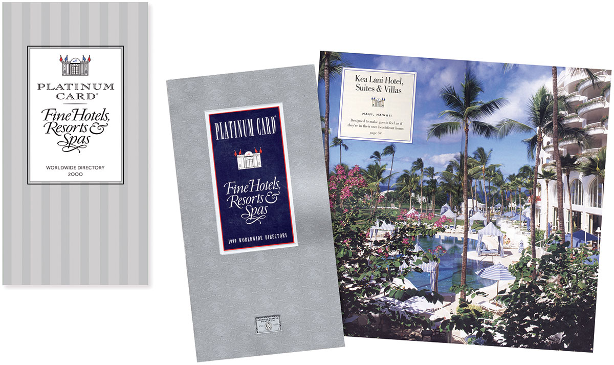 For ten years I managed brand identity, art direction, communications coordination, writing, and production of this annual directory of 300+ luxury properties around the world. Glamorous hotel shots alternate with pages of well-crafted listings that highlight privileges exclusive to Cardmembers who make their reservations through Platinum Card Travel Service.