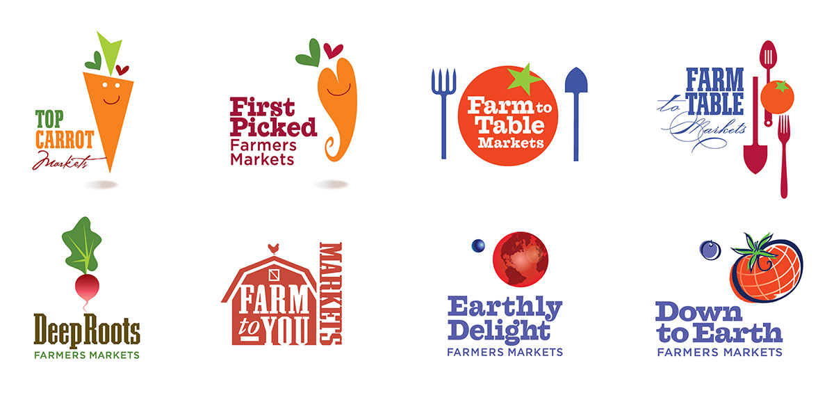 The name Community Markets was seen as too generic. The logo was a dated-looking carrot with one red leaf, called the Carabeeta. Name development was the first phase of our engagement — name development with logos. After all, the best name won’t take a company far without a memorable symbol. And a memorable symbol (unless you’re Nike or Starbucks) doesn’t work without a name. I loved my little barn with a chicken on top and ‘markets’ as the silo. The founders did not. Then we came up with a winner: Down to Earth with a tomato globe and blueberry moon.