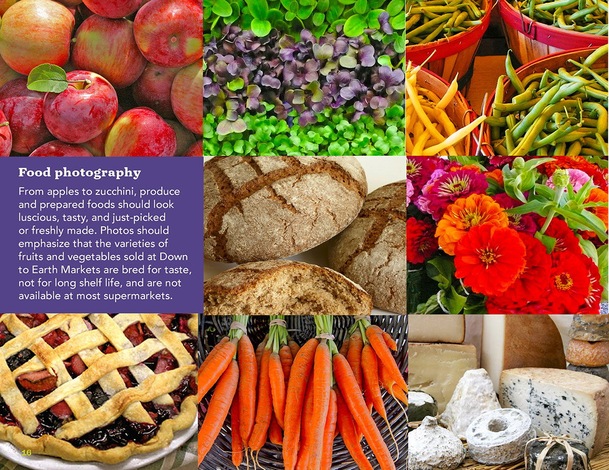 I found Community Markets’ photography, whether in print materials or the website, lacking in taste appeal. Get up close and make it look delicious! Examples are from a mix of my own photography and stock.