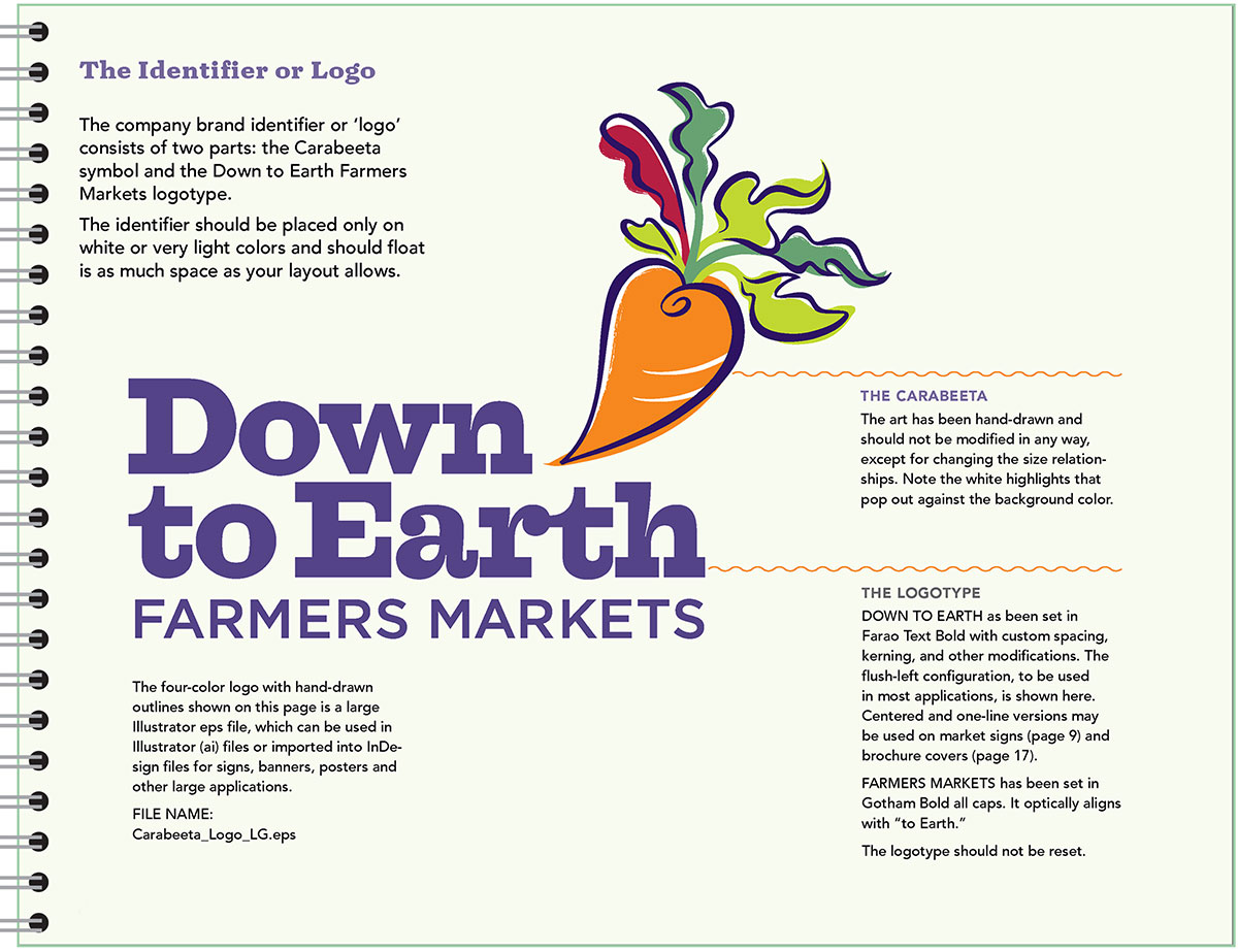 Weeks later, we were ready to go with banners, newspaper ads for 20 markets, new business cards. There apparently was an uprising among the constituency; the farmers who supplied the markets and the local market managers did not want to lose their Carabeeta. Upsetness, then a quick change to meet deadlines for the season opening and ad placements: Steve Salerno, who’d made the illustrations for the banners, and I turned the carrot into a refreshed Carabeeta.
