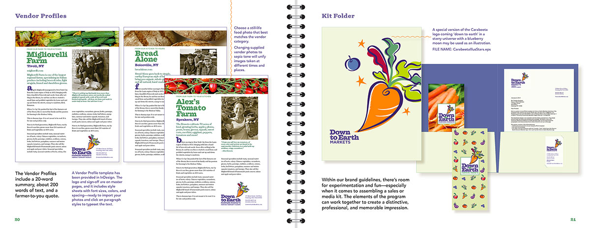 The brand book provides guidelines on how to create attractive vendor profiles (shoppers want to know) and produce such necessities as kit folders, rack brochures, and letterhead and business cards — using stock photography and the new library of colors, typography, patterns and recommended layouts.
