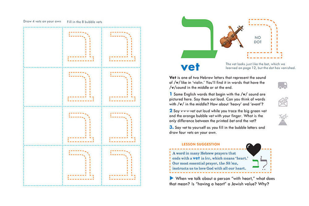 When I started teaching Sunday School, I found the books that I was given to be poorly produced and difficult to use for both me and the kids. Following Alphagram’s multisensory methodology for teaching phonics, reading, and spelling in English, I made worksheets for my students with color emoji that represented the letter-sounds and created games and activities with them. Soon, a book materialized, now in its third edition. The lessons progress from consonants to syllables with vowels, to words and sentences. Every lesson introduces one aleph-bet letter, pairs the letter with a Jewish value, ritual, prayer, or holiday, and ends with a suggested discussion or activity.